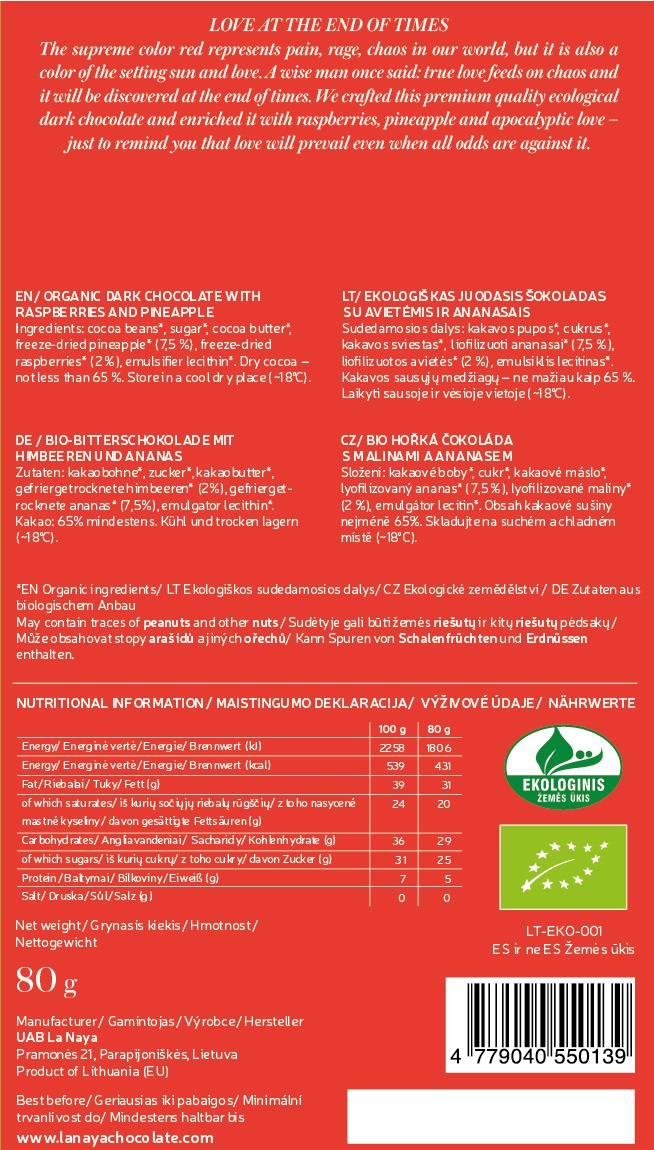 Juodas Šokoladas / 65% kakavos / Ekologiškas / 80g