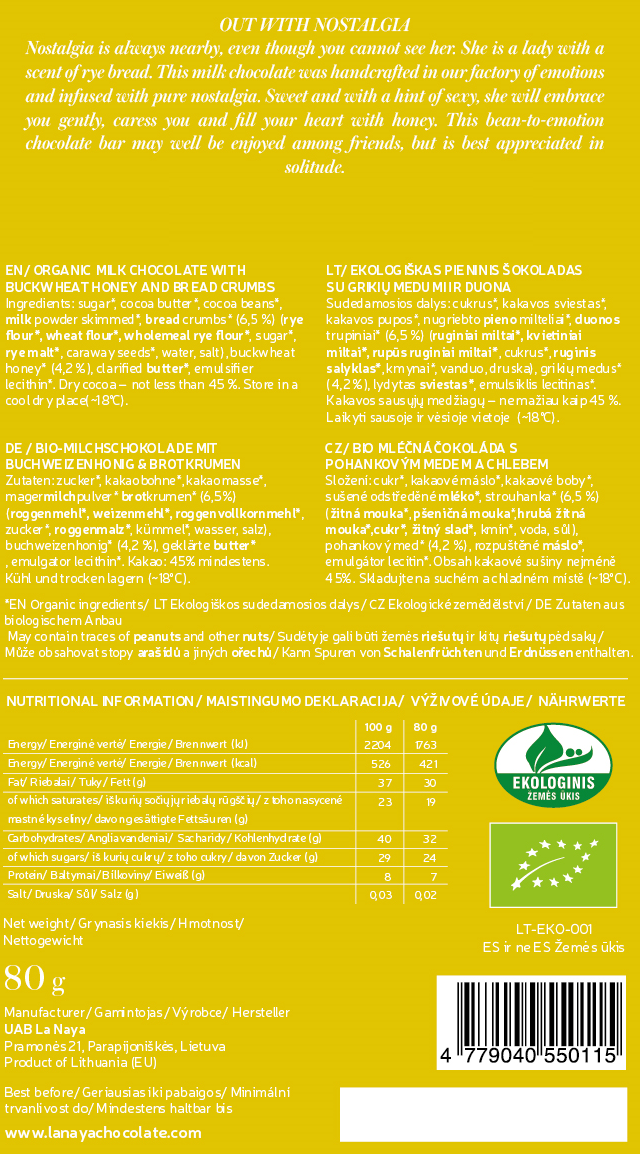 Pieniškas Bean-To-Bar šokoladas su rugine duona ir grikių medumi